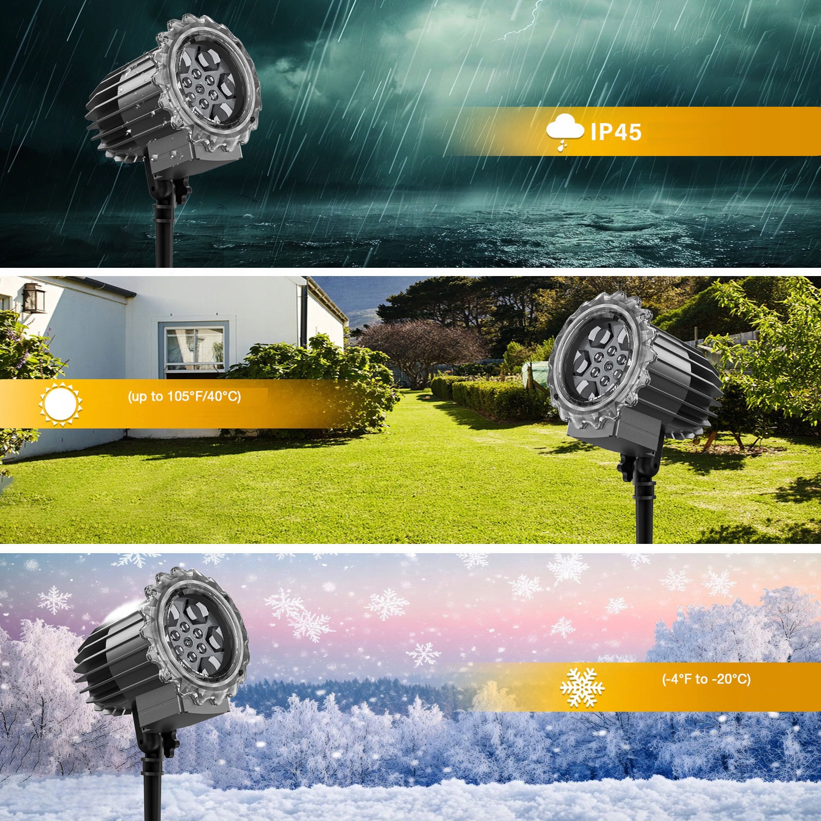 Он будет отображать белые движущиеся снежинки как на здании, так и на доме, например в комнате.