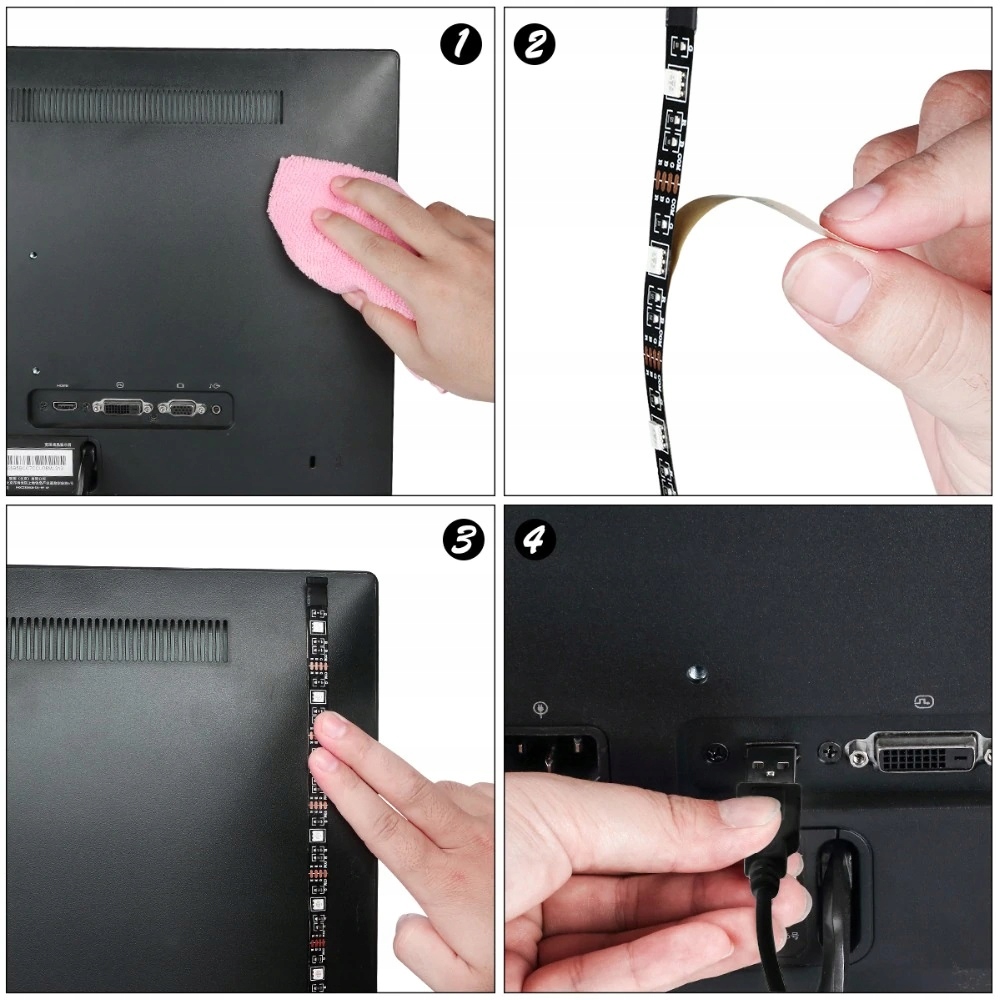 Лента питается от USB-разъема и управляется с помощью беспроводного пульта дистанционного управления. Благодаря светодиодам RGB вы можете менять цвет и интенсивность света, а также эффекты и их скорость. Они имеют водонепроницаемость IP20 и прочную самоклеящуюся ленту для их крепления.