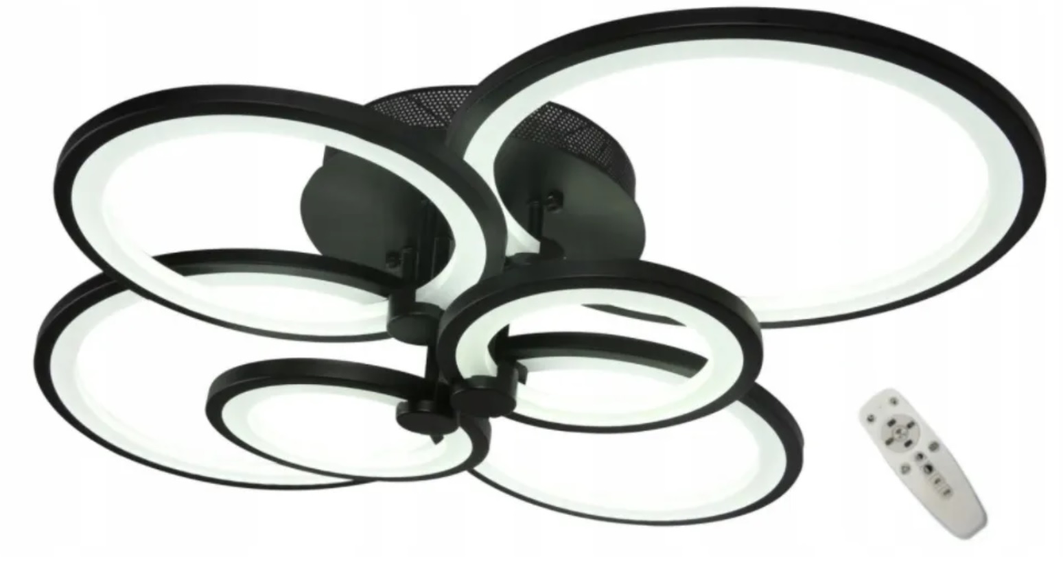 LED СВІТИЛЬНИК СТЕЛЬНА ЛЮСТРА ПУЛЬТ 130W 6xRING
