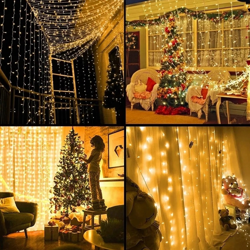 СВЕТОДИОДНАЯ СВЕТОВАЯ ЗАВЕСА ДЛЯ ОКНА 300LED 3X3M ТЕПЛЫЕ БЕЛЫЕ ЛАМПЫ ГИРЛАНД ДИСТАНЦИОННЫЙ