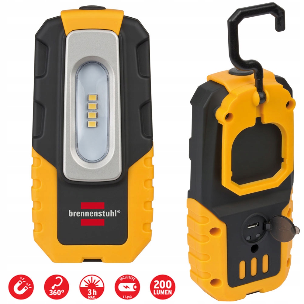 Ручная светодиодная BrennenStuhl 4 LED HL DA 40 MH 200LM 1176440 H1> Светодиодная батарея из ручной работы от Brennenstuhl HL DA 40 MH. Небольшая и удобная лампа, оснащенная крючком, магнитом и зажимом для удобной фиксации в различных ситуациях