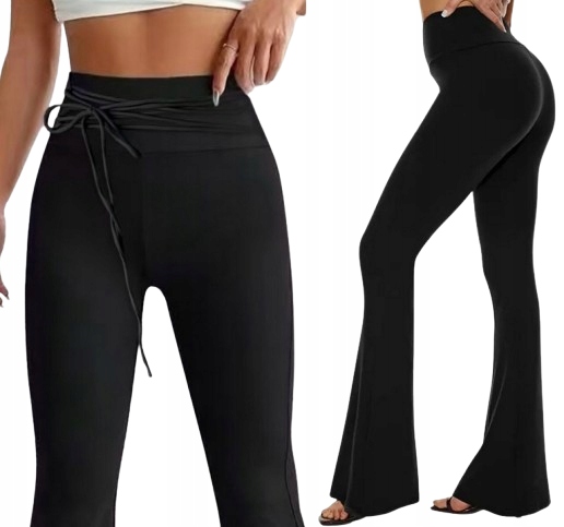 Женские леггинсы с завышенной талией и завязками BELLS - черные, модные расклешенные ноги