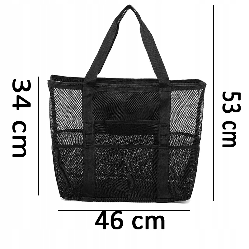 Вместительная сумка для пляжа, игровой площадки или прогулки . Здесь наверняка вместится все необходимое для пляжа или небольшого шоппинга. Сумка вместительная и функциональная, сделана из сетки, так что мокрые вещи можно брать из Пляжи просторные, и от песка можно легко избавиться. Карманы помогут нам положить больше необходимых вещей — мы избежим долгого поиска в сумке.