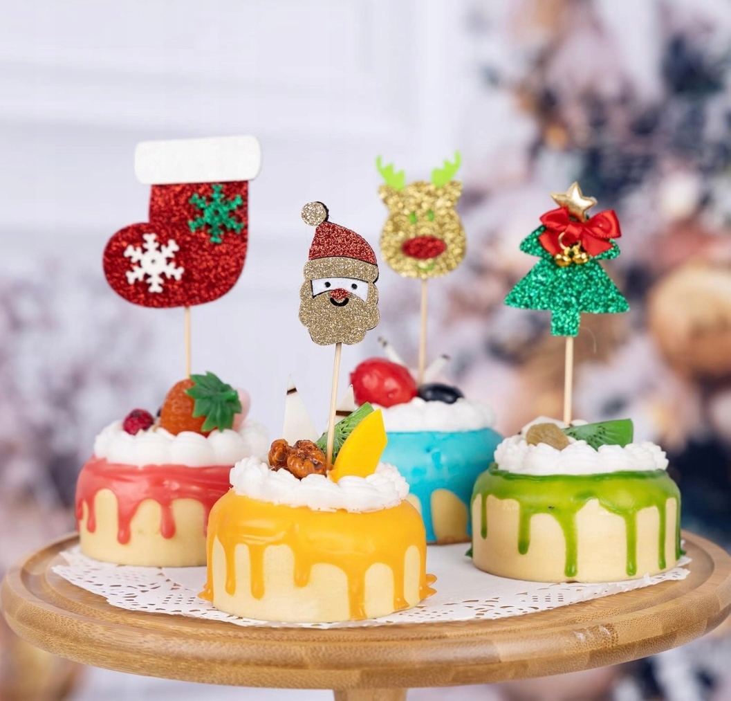 Рождественские кексы, содержит 18 кусочков наложений торта, они измеряют около 13 см и могут использоваться в различных стилистических комбинациях. Мотив Рождество сделано из безопасных и нексичных зубочистков и оформленных украшений, которые вы можете использовать без страха. Рождественские елки, рождественские носки и коробки для подарков, которые создают праздничную атмосферу. Декоративная часть прекрасна и тщательно сделана, с блестящими блестками и колокольчиками. Добавьте больше атмосферы для рождественской вечеринки