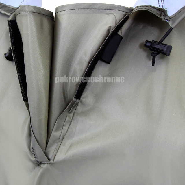 Накидка обеспечивает отличную защиту от дождя во время длительных поездок или экспедиций. Его можно использовать как летом, так и зимой. Изготовлен из 100% водонепроницаемой ткани с двойной пропиткой. Эта ткань отличается небольшим весом, поэтому накидка не обременительна при длительных поездках и занимает мало места. Размеры накидки достаточно велики, чтобы под нее поместился большой рюкзак. Основные швы дополнительно прошиты изнутри, благодаря чему они обеспечивают еще лучшую защиту от воды.