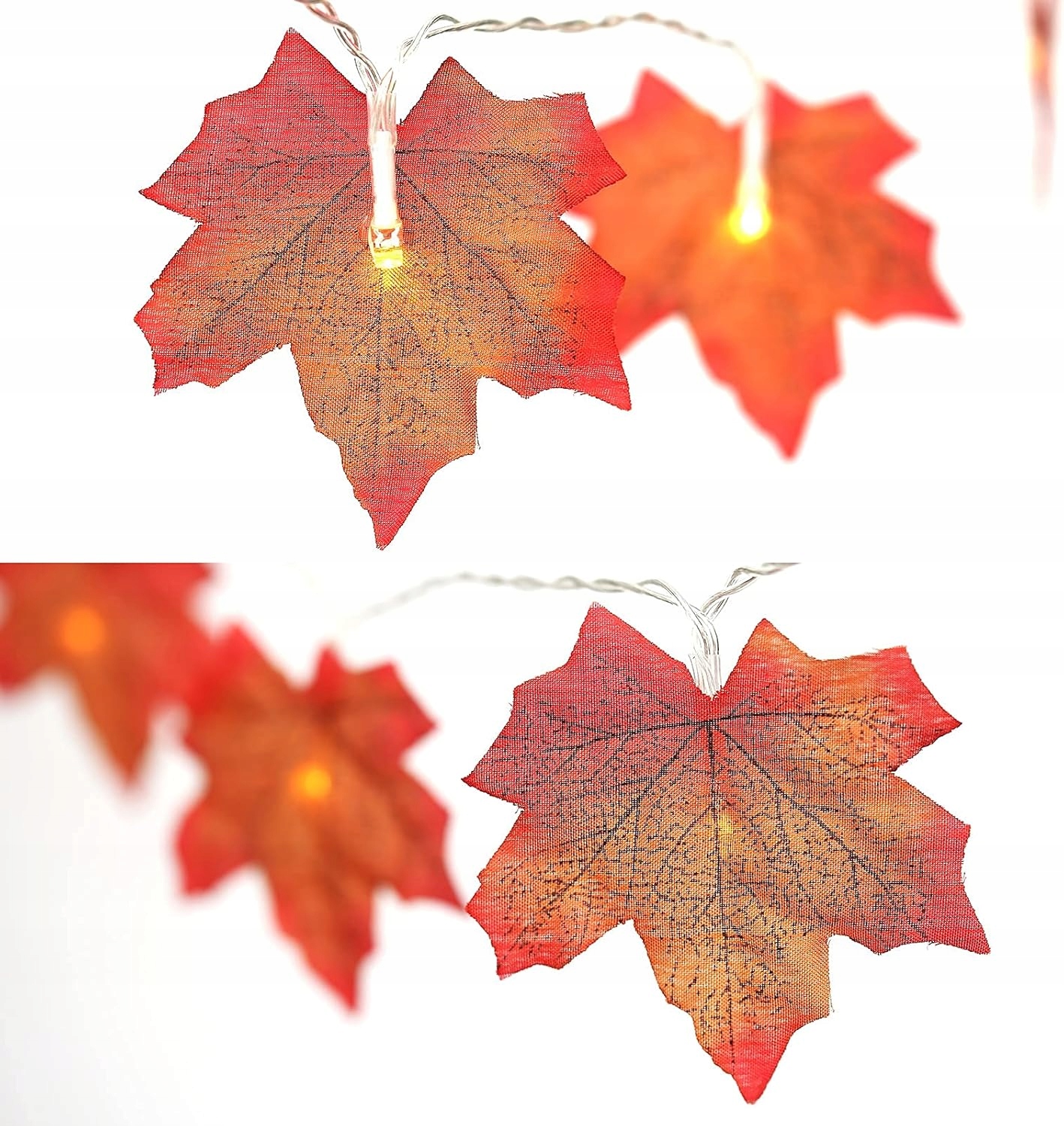 🍁 [Водостойкость]: как светодиоды, так и кленовые листья являются водонепроницаемыми, что позволяет использовать их в качестве внутреннего и внешнего украшения. Их можно повесить на потолке, шторах, балюстрадах, террасах, а также на елке.