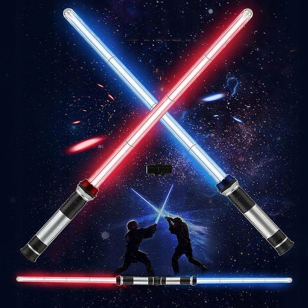 2 выдвижные световые мечи с 3 секциями (длина может быть от 41 см до 81 см) с простыми -использовать ручки, два световых меча можно объединить со вспомогательным светом.