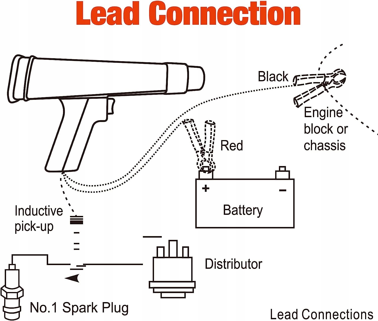 - ►【Защита от полярности и безопасность】 Пистолет момента зажигания оснащен красными и черными сенсорными зажимами для определения его полярности. Пистолет угла опережения зажигания также обеспечивает частоту вращения двигателя до 8000 об/мин и оснащен защитой от обратной полярности для обеспечения безопасного использования. Зажимы для датчиков легко подключаются, просты в использовании и безопаснее.