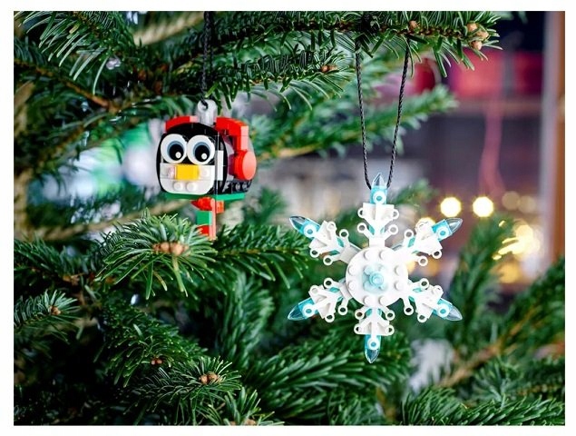 - Сезонный дуэт Lego® - Рождественские украшения для построения: пингвин с красными ушными подушками и снежинками