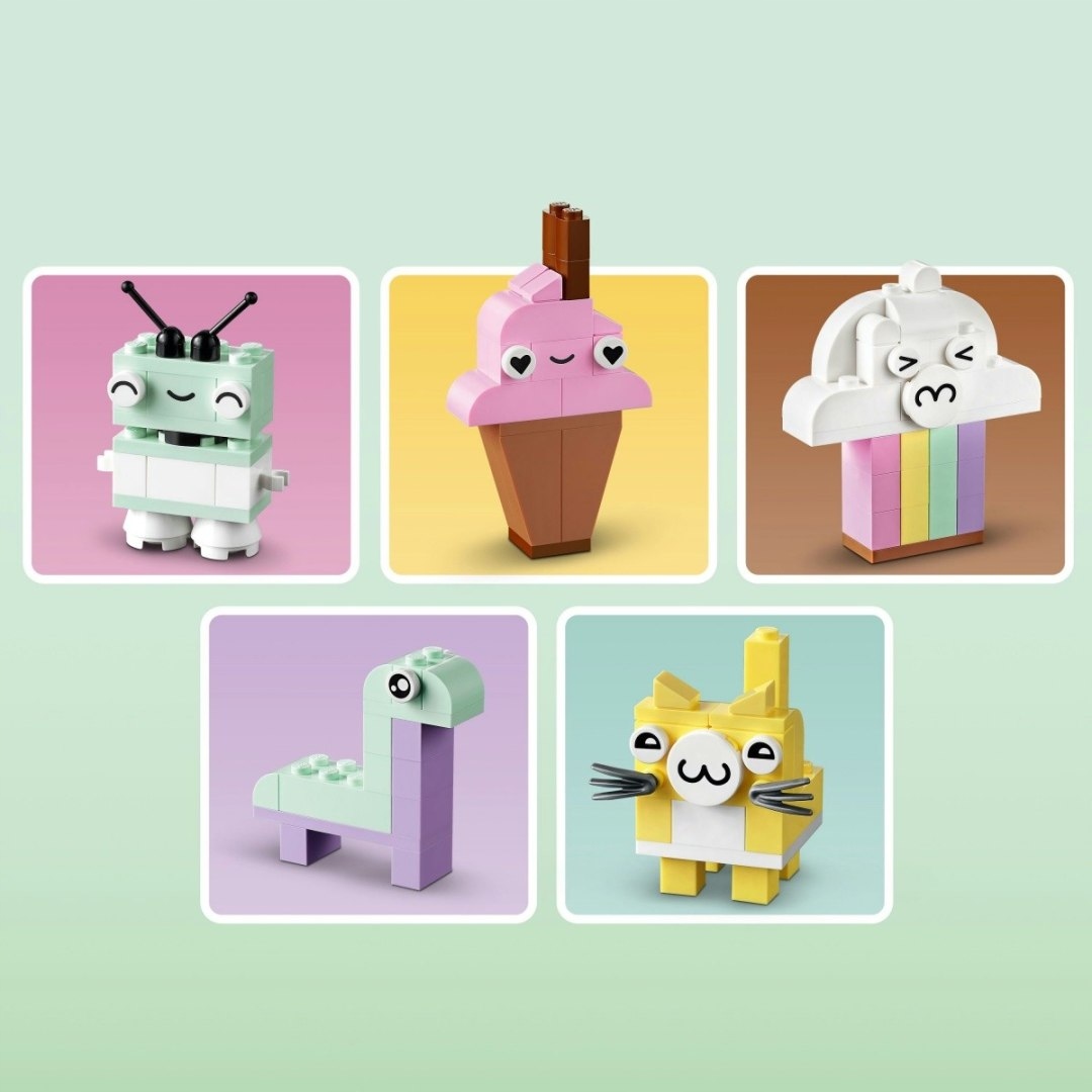 Набор кубиков LEGO CLASSIC в пастельных тонах ЖИВОТНЫЕ КОШКА МОРОЖЕНОЕ ОБЛАКО РОБОТ