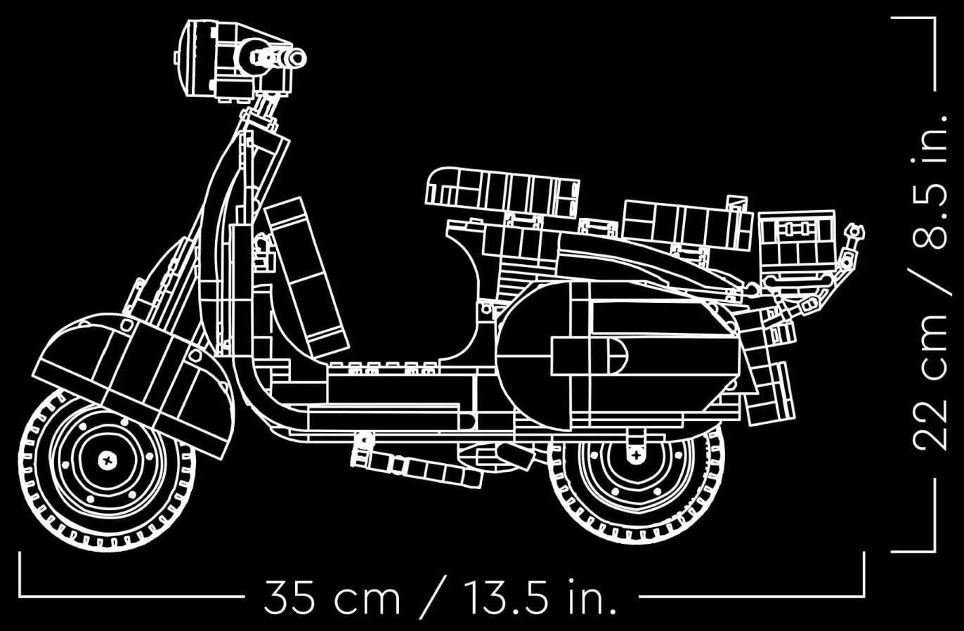 - Занятие для взрослых. Этот набор LEGO® входит в серию конструкторов, созданных для взрослых любителей конструирования, и станет отличным подарком для поклонников самокатов Vespa.