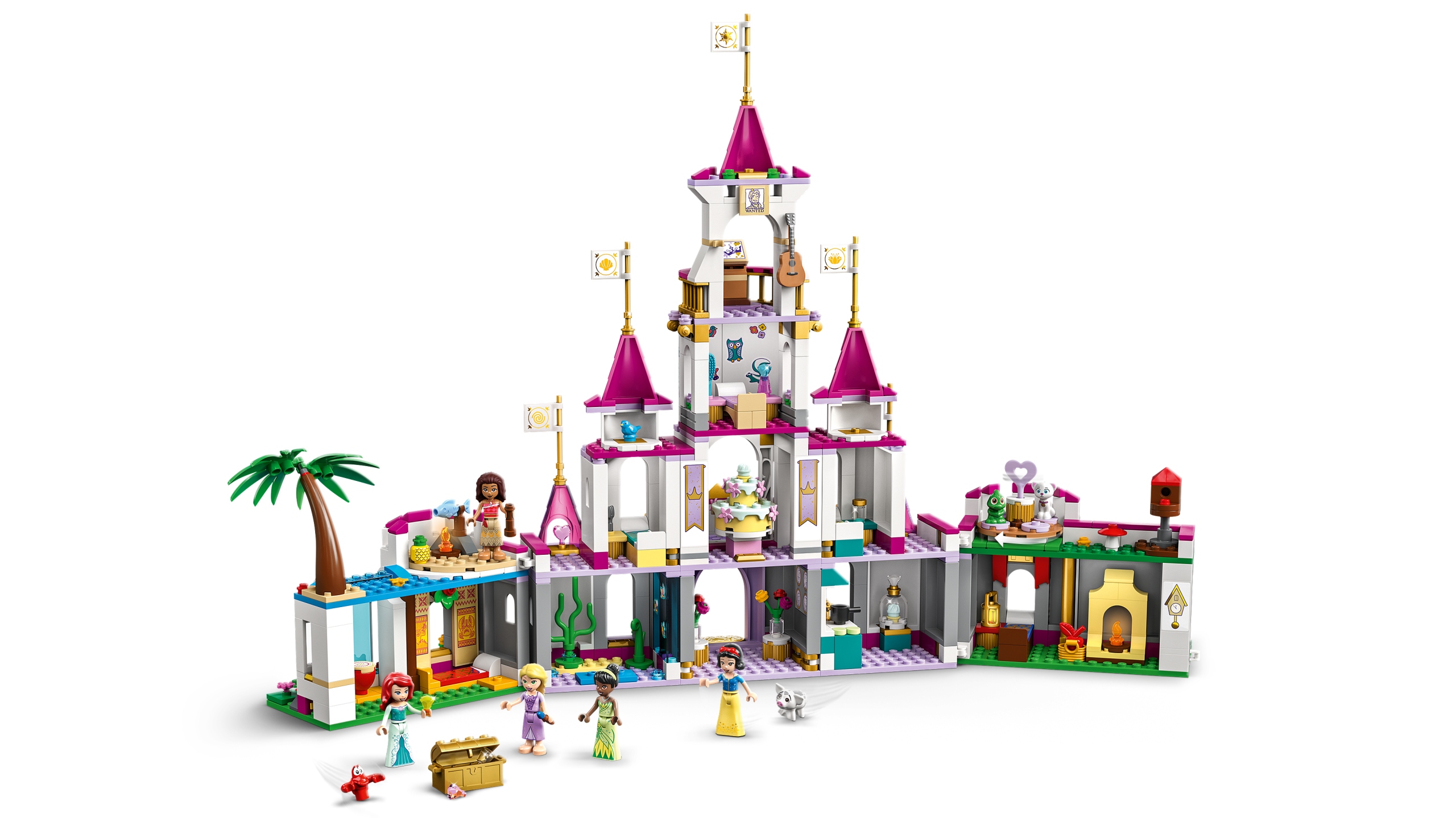 Посетите пять персонажей принцесс Диснея в Замке чудесных приключений! Соберите этот набор LEGO® ? Disney и начните исследовать мир. Откройте замок и загляните в спальни Ариэль, Моаны, Рапунцель, Белоснежки и Тианы. Затем посетите игровую площадку на крыше и поиграйте с животными принцесс, прежде чем съесть торт. Когда вы закончите играть, закройте и заприте замок!