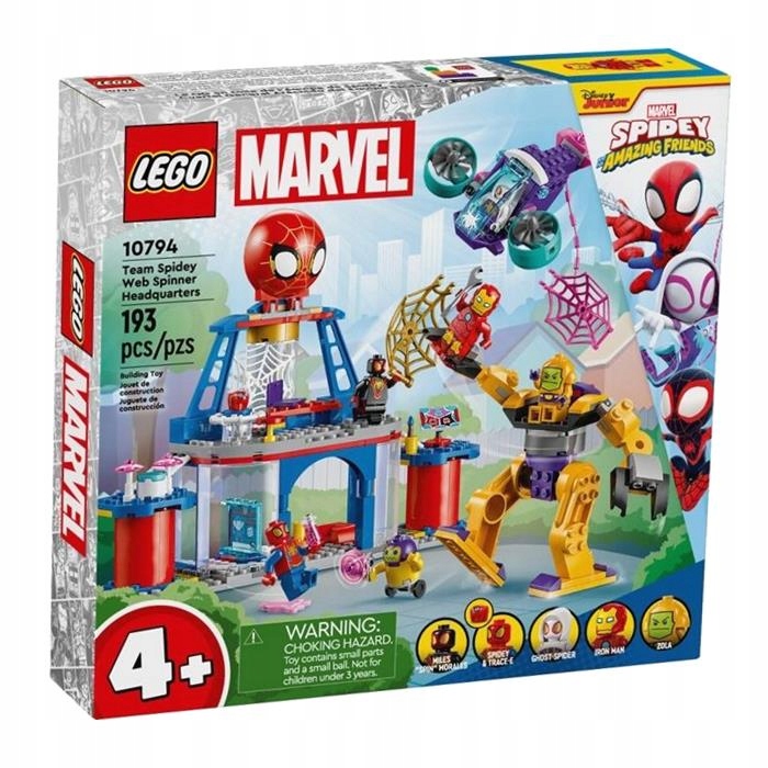В этот набор героев боевиков LEGO Marvel входят минифигурки Человека-паука, Железного человека, Майлза «Спина» Моралеса, Паука-призрака и Золы. В комплект входит большой робот Золя с подвижными ногами и когтями, позволяющий схватить минифигурку, а также летающий спиннер с вращающимися пропеллерами, открывающейся кабиной и большим розовым сетчатым элементом. Обстановка главного здания вдохновляет детей на ролевые игры, отражая интересы супергероев в науке, музыке и живописи.