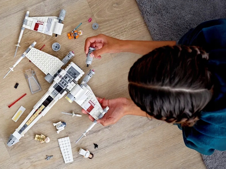 Поклонники будут в восторге от реалистичных деталей. , в том числе открывающаяся кабина для минифигурки LEGO с местом для R2-D2 сзади, крылья с кнопкой установки боевого положения, убирающееся шасси и подпружиненные шутеры.