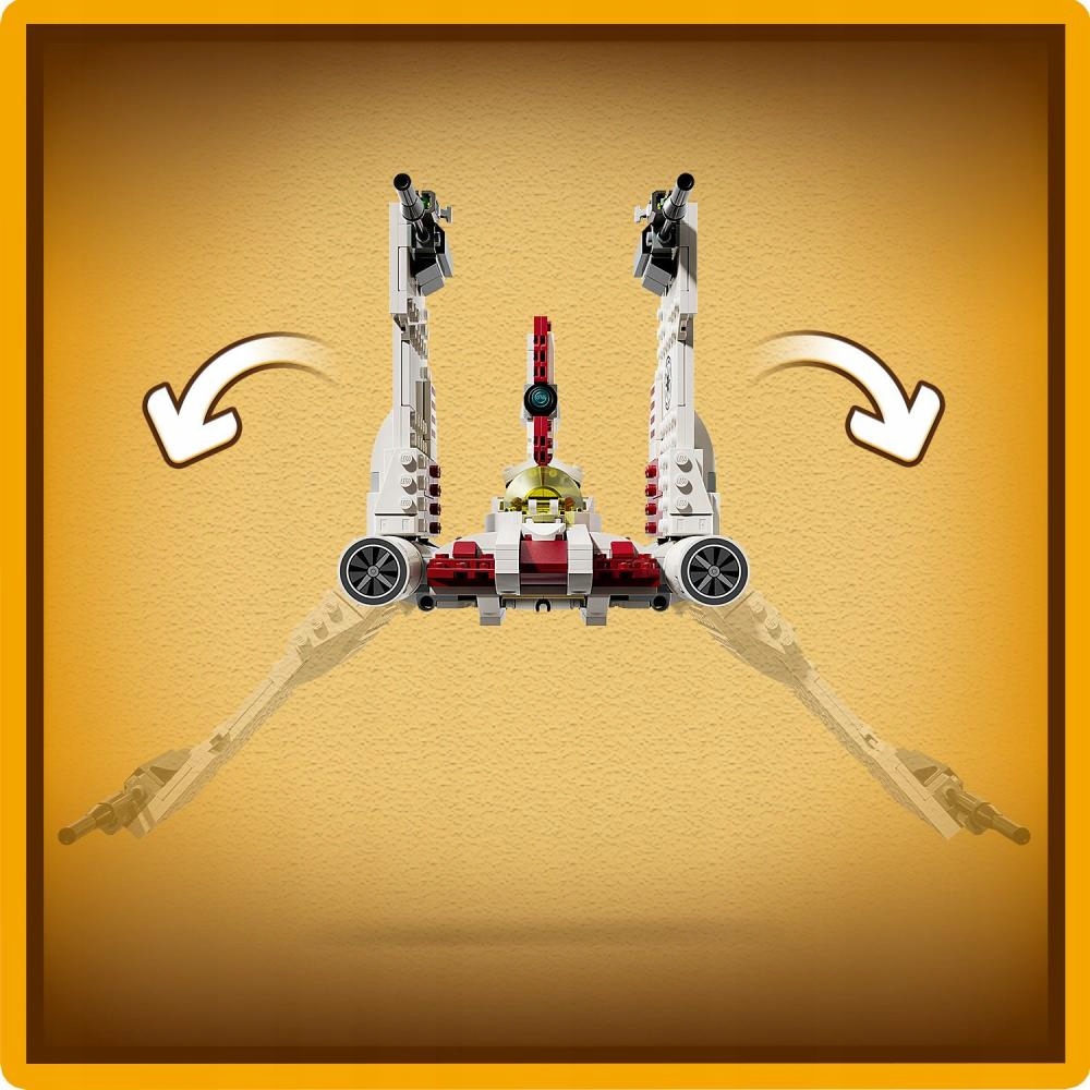 - LEGO® Star Wars Starfighter — с открывающейся кабиной, регулируемыми крыльями для режимов полета и приземления и двумя шипометами для ролевых игр в эпических битвах.