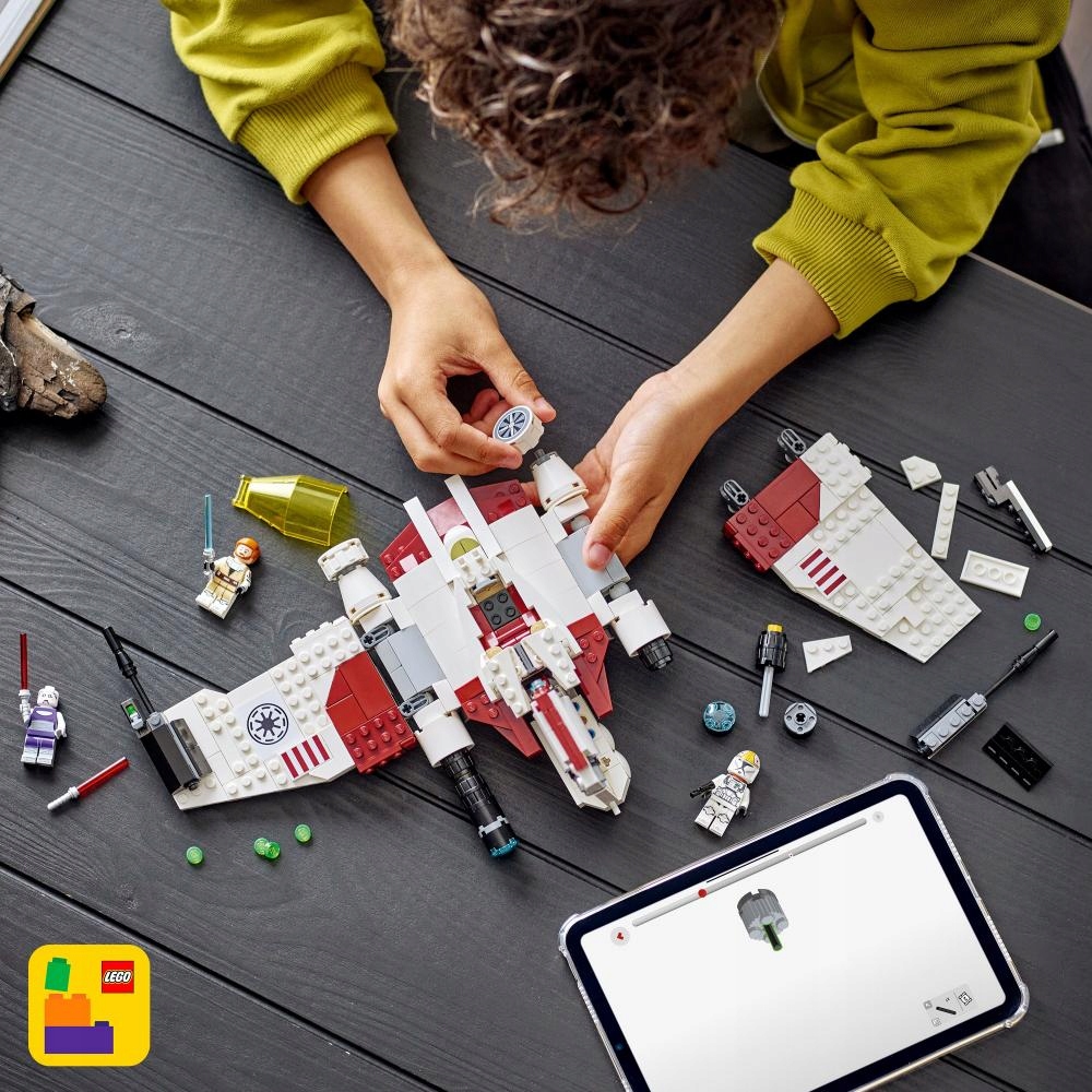 Расширьте творческий опыт детей с помощью приложения LEGO Builder, где они могут масштабировать и вращать цифровую 3D-версию истребительных войн из «Звездных войн».