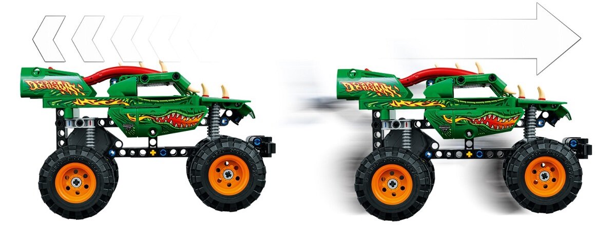 Набор LEGO® Technic Monster Jam™ Dragon™ позволяет вашему ребенку конструировать > и гонки на автомобиле с инерционным двигателем. С возможностью создания двух моделей, обеспечивающих часы удовольствия. Наклейки с мотивами Monster Jam™ позволят вам персонализировать свой монстр-трак.