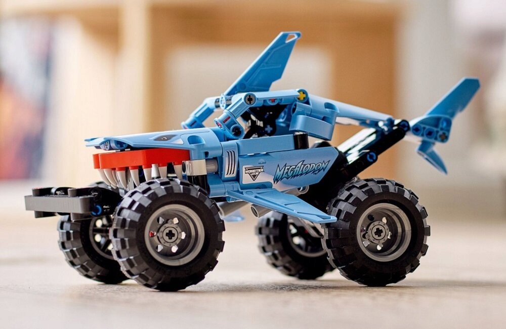 Monster Jam™ Мегалодон LEGO Technic — это не только грузовик-монстр — его можно перестроить b> Эта модель позволяет создать динамичный гоночный автомобиль, предлагая детям увлекательную альтернативу игре