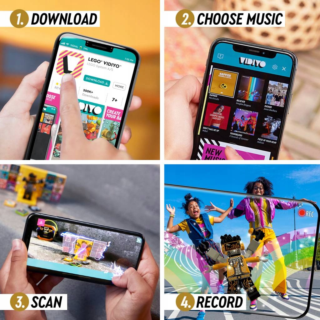 • Загрузите бесплатное приложение LEGO® VIDIYO™ и отсканируйте минифигурку и BeatBits со специальными эффектами, чтобы воссоздать персонажа, представленного в хип-хопе. музыкальное видео, снятое детьми.
