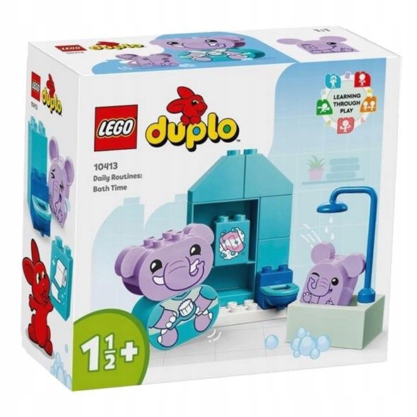 o Развивающая игрушка — включает в себя две фигурки слонов, туалет, ванну и душ, построенные из цельных кубиков LEGO(R) DUPLO(R), а также элементы для развлечения в купании.