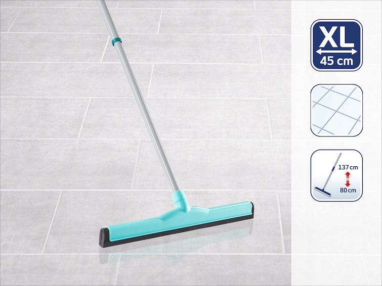 На террасе, на лестнице, на кухне или в ванной комнате: благодаря двойной вставке из синтетического каучука скребок для пола Leifheit Classic с телескопической ручкой полностью убирает грязь и вода с плитки и каменных полов. То, что не удерживает первый слой ракеля, будет удалено вторым. Кроме того, он имеет значительную ширину – 45 см. Благодаря этому можно быстро и эффективно собирать воду даже с больших поверхностей. Телескопическая штанга швабры для пола Leifheit регулируется по длине, что обеспечивает высокий комфорт работы. Его можно установить на длину от 80 до 132 см, чтобы им было комфортно пользоваться каждому члену семьи, независимо от роста. Чрезвычайно практично: на конце стержня имеется отверстие, позволяющее повесить швабру, например, на стену.