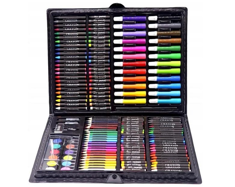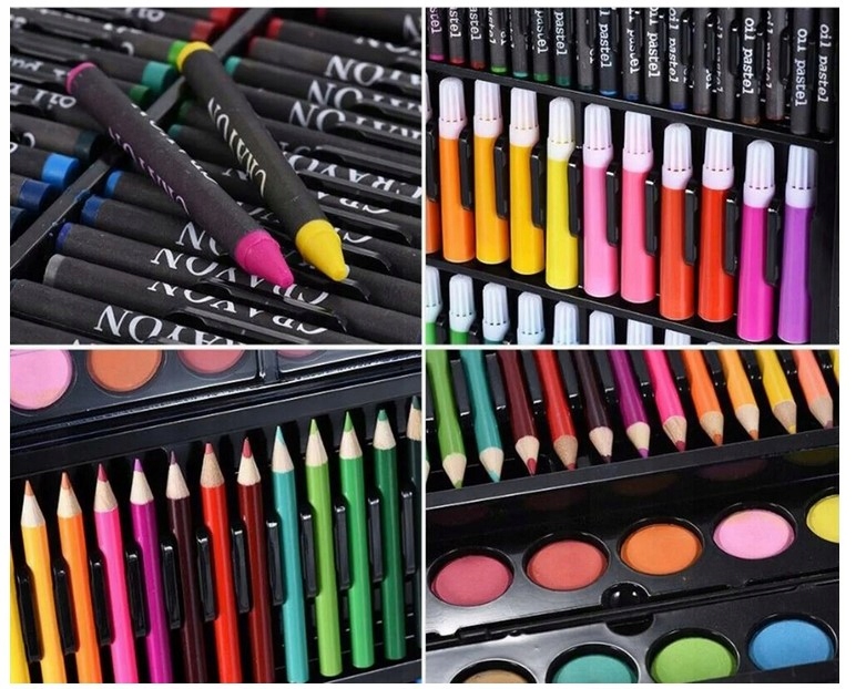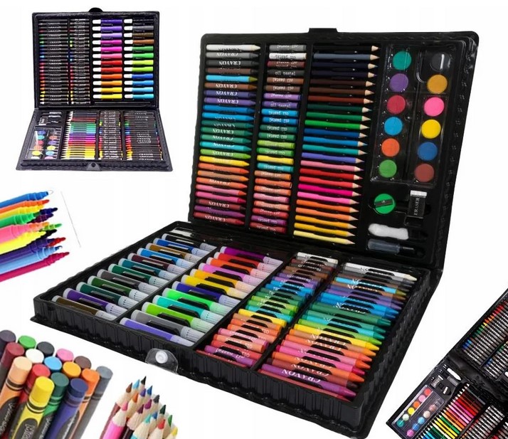 Набор заключен в практическом чемодане с отсеками, что обеспечивает порядок и удобство использования. Он содержит карандаши, маркеры, пастели, краски и много полезных пластиковых аксессуаров. Это идеальный инструмент для разработки пластиковых талантов у детей и взрослых, начинающих и продвинутых.