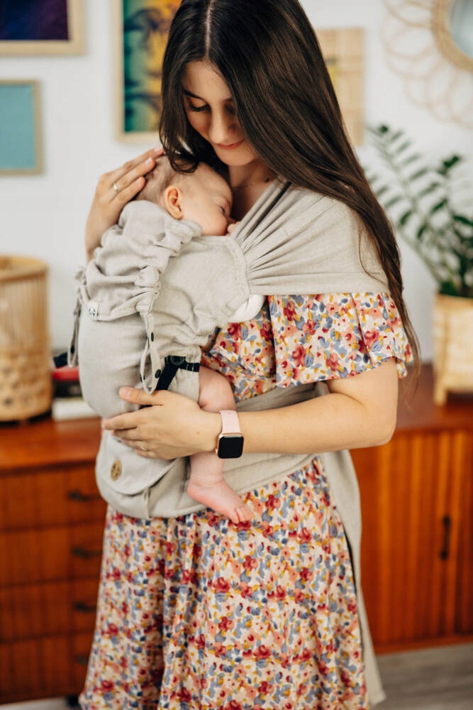 Функциональность: два положения для переноски – спереди с рождения и сзади с четвертого месяца жизни. Многоуровневая регулировка полотнища и лямок шарфа обеспечивает идеальную посадку и правильное, эргономичное положение ребенка на каждом этапе развития.
