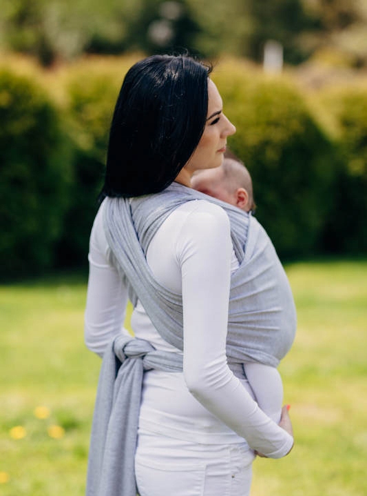 Эластичный детский слинг от бренда LennyLamb красивого серого оттенка.