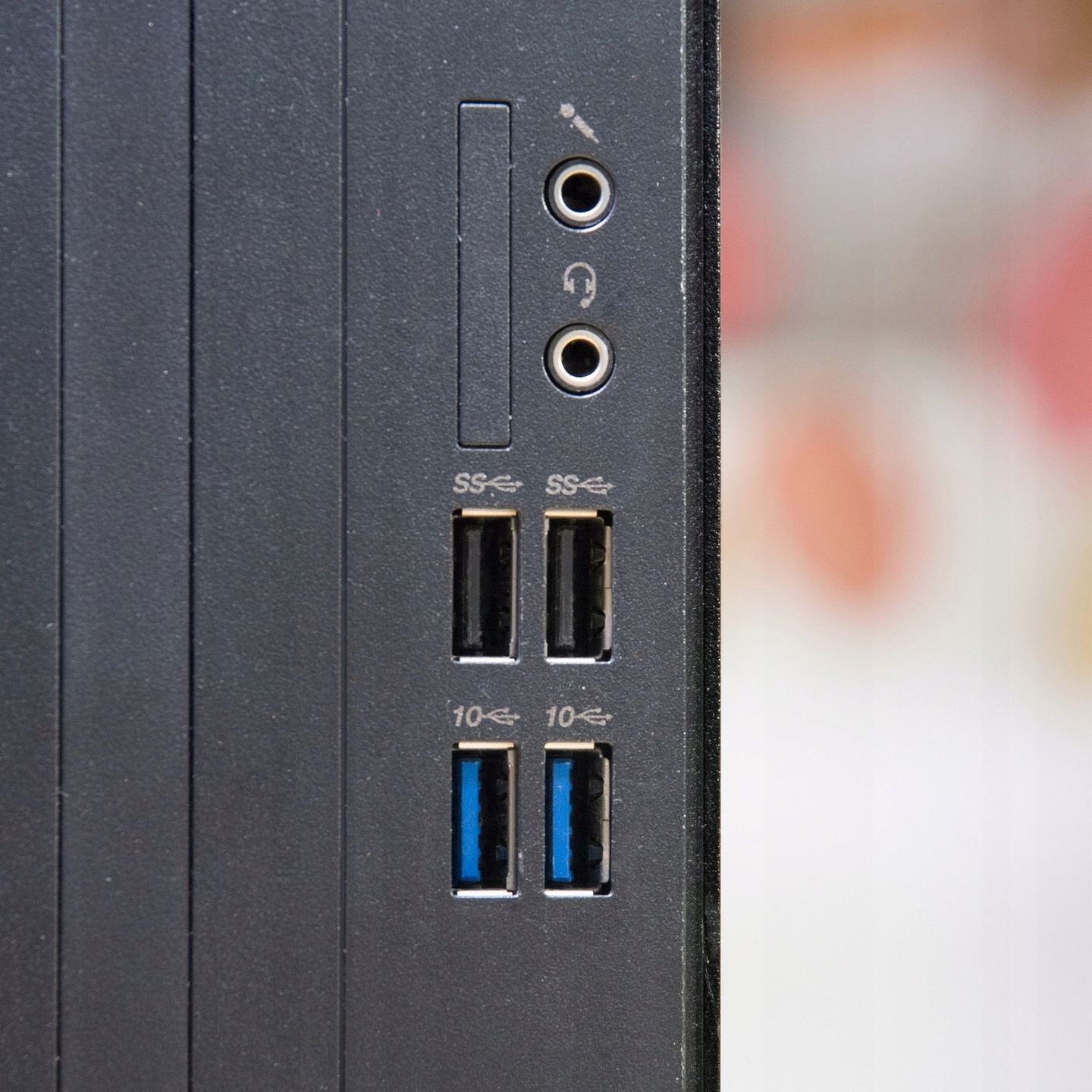 Компьютер оснащен четырьмя быстрыми разъемами USB 3.0 на передней панели , что позволяет легко подключить внешние устройства и обеспечивает быструю передачу данных. находятся на спине, а также два порта USB 2.0. Компьютер поддерживает в общей сложности восемь портов USB , позволяя вам подключить широкий спектр офисного оборудования.