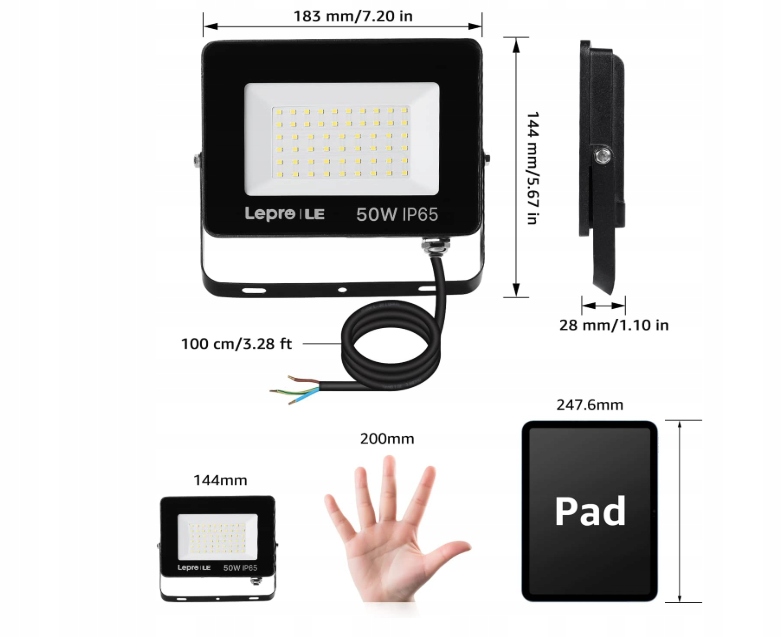 Светодиодный уличный прожектор Lepro 50 Вт, 1 шт., 4200 лм, супер яркий уличный прожектор, водонепроницаемый светодиодный прожектор IP65, 5000 К, холодный белый, уличный светильник для сада, двора, гаража, гостиницы и т. д.