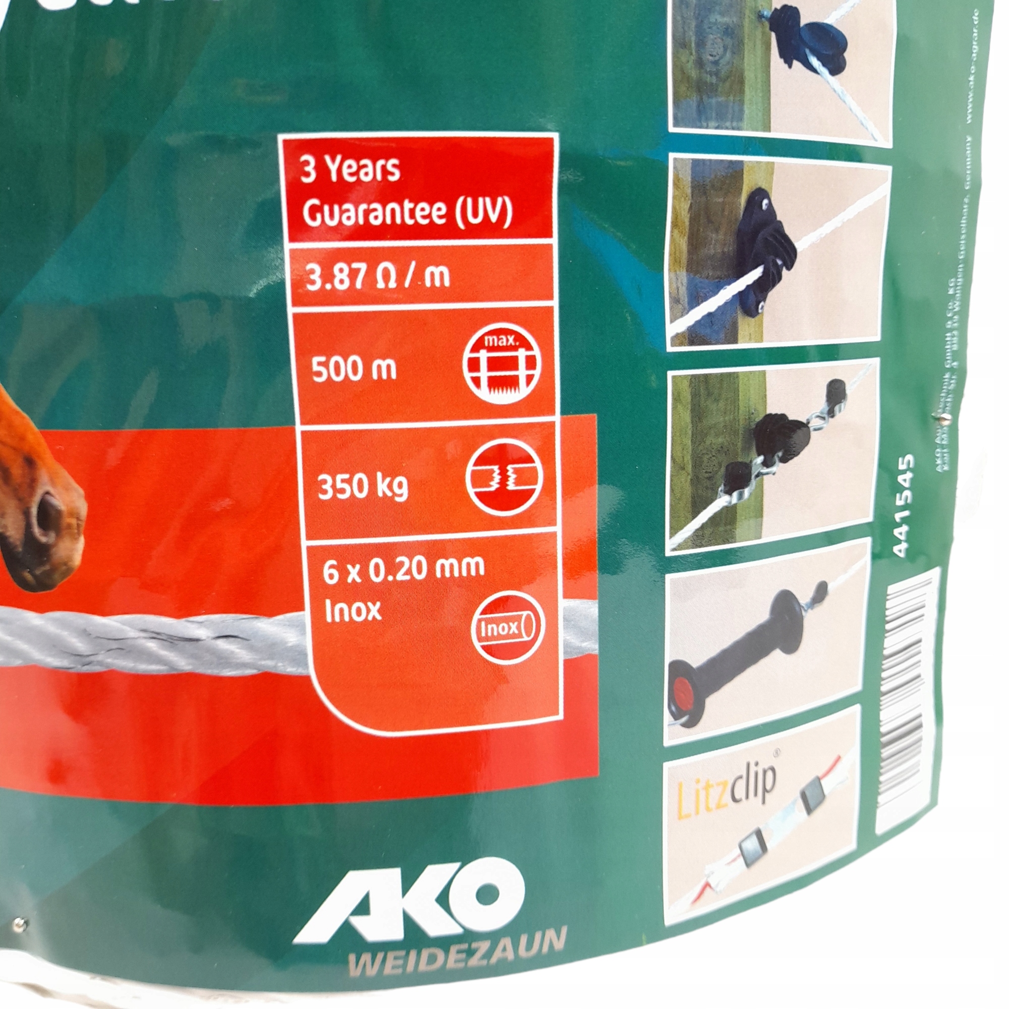 Очень качественный кабель диаметром фи 6, длиной 500м и сопротивлением 3,87 Ом на метр. В переплетении 6 стальных проволок. Его используют для строительства электрических изгородей для дойных коров, мясного скота, лошадей и других животных. Очень высокая разрывная нагрузка - 350кг.