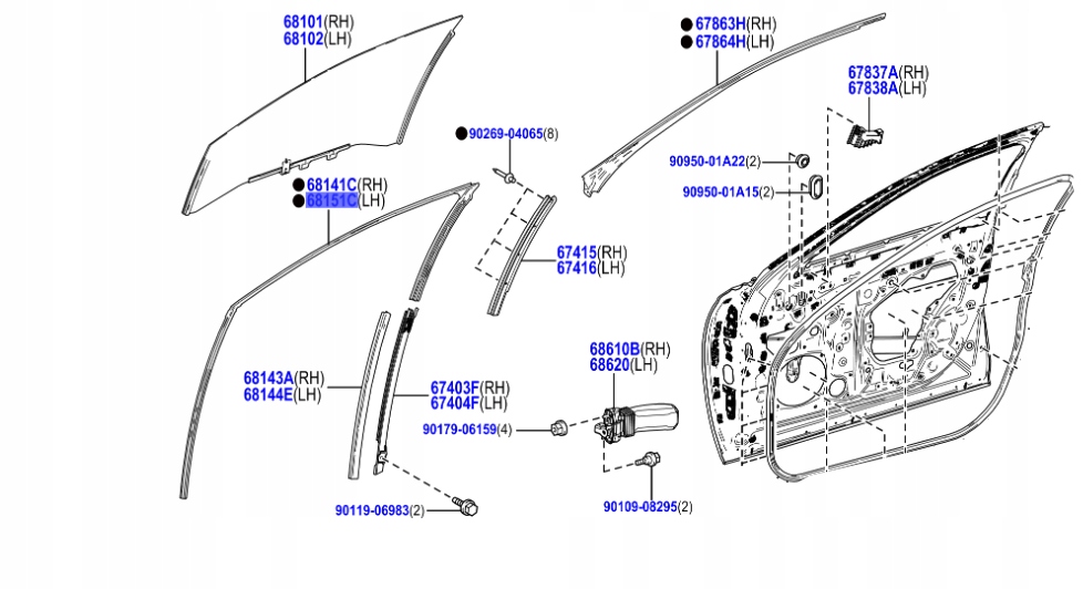 LEXUS LS 17-25 УПЛОТНИТЕЛЬ ОКНА НАПРАВЛЯЮЩАЯ ПЕРЕДНЕЙ ДВЕРИ ПЕРЕДНЯЯ ЛЕВАЯ