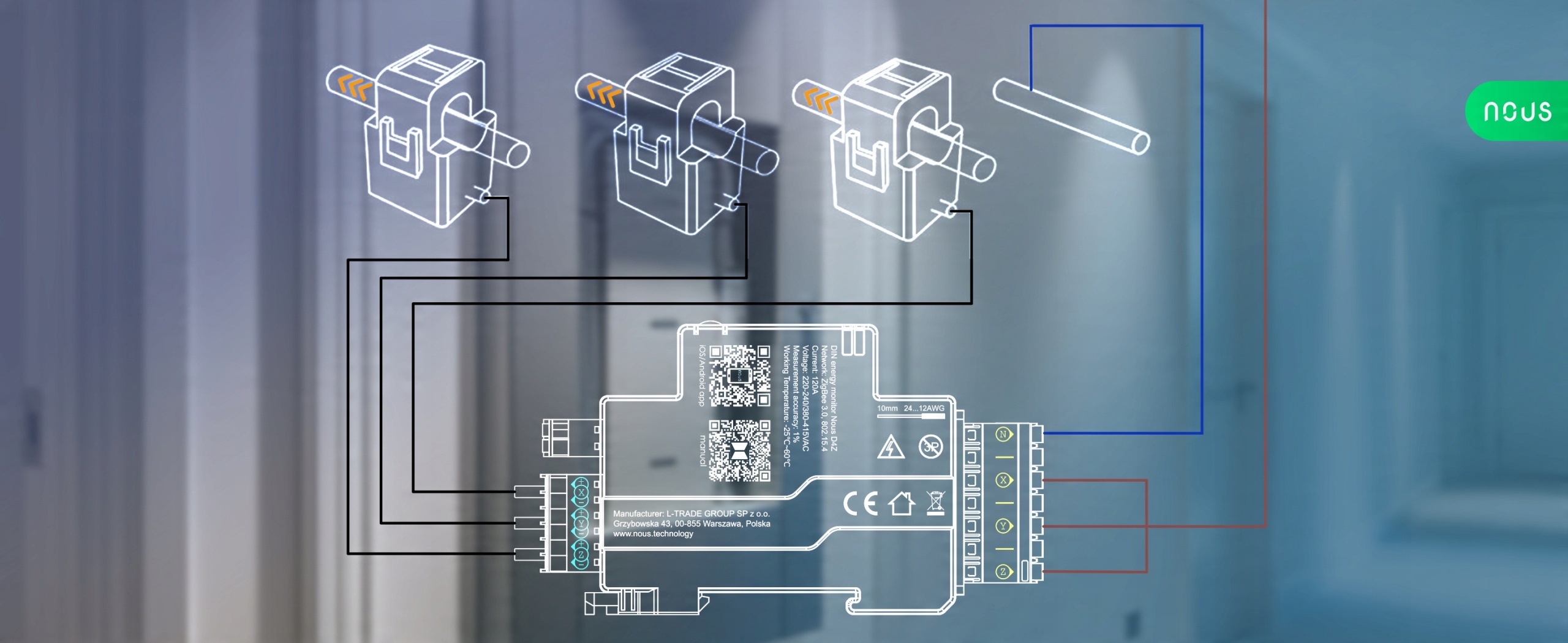 NOUS D4Z ZigBee Smart DIN Счетчик электроэнергии 120 А, монитор энергопотребления, совместимый с Alexa и Google Home, монтаж на DIN-рейку, мониторинг в реальном времени, сертифицирован CE и RoHS