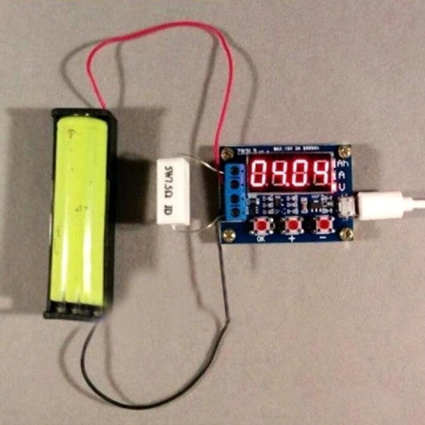 Измеритель емкости позволяет проверять емкость батарей, таких как Ni-MH, Ni-CD, Li-Ion, Li-POL, Li-Fe, PB и другие от 1 В до 15 В. разъем в+ и в батареи. Тестер работает при напряжении 5 В, он питается разъемом Micro USB.