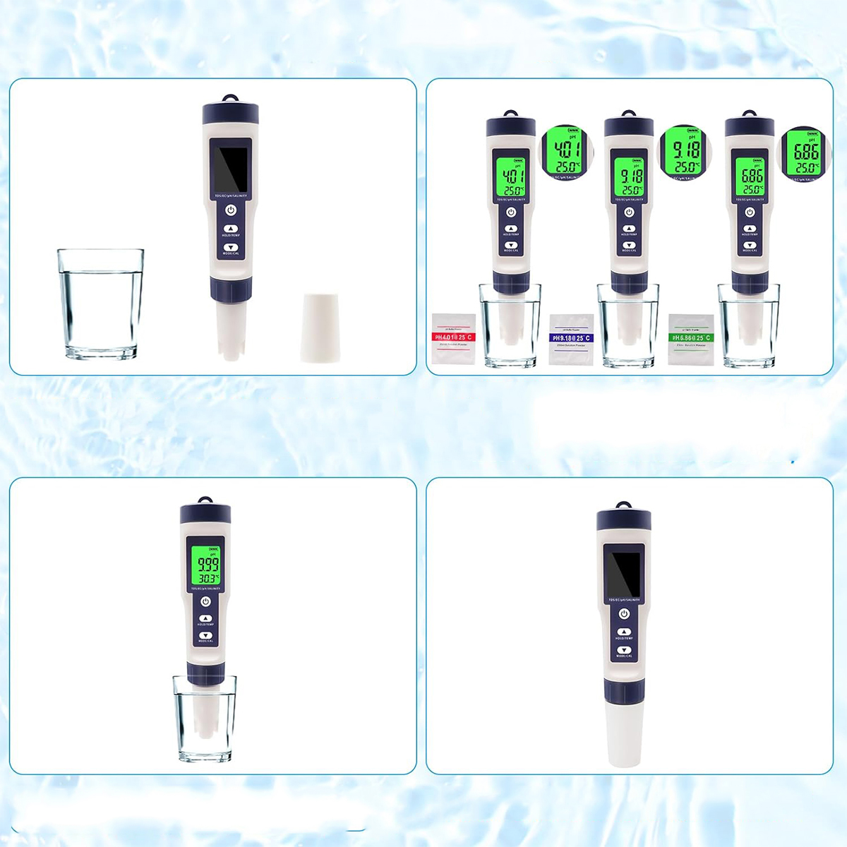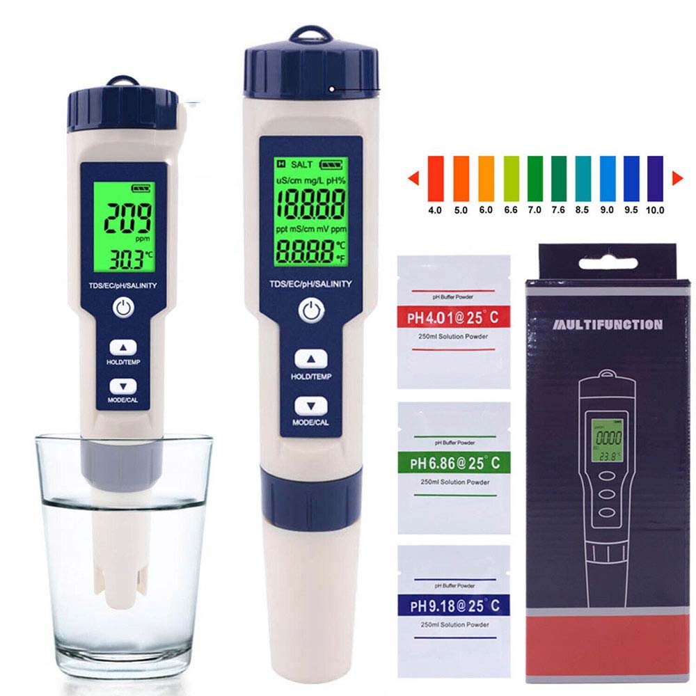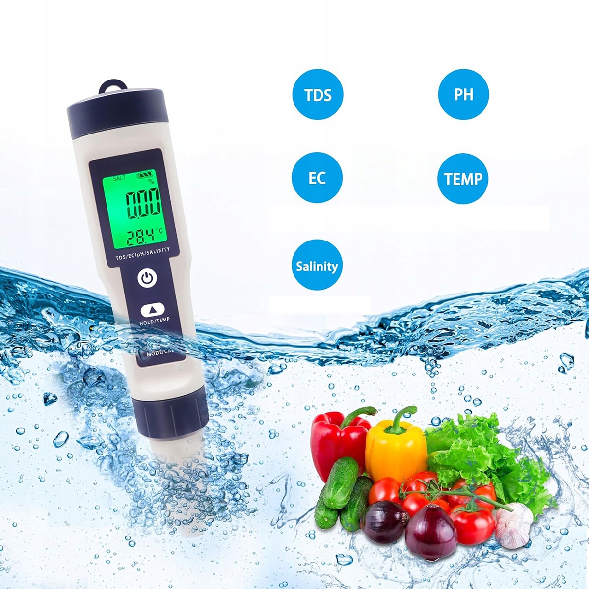 Youkuke EZ-9909 Цифровой счетчик воды, 5 в 1 TDS EC, тестер солености, температуру и рН с ACT, PH-метр IP67, тестер питьевой воды для воды, растения, питьевая вода, аквариумы и т. Д. H1>