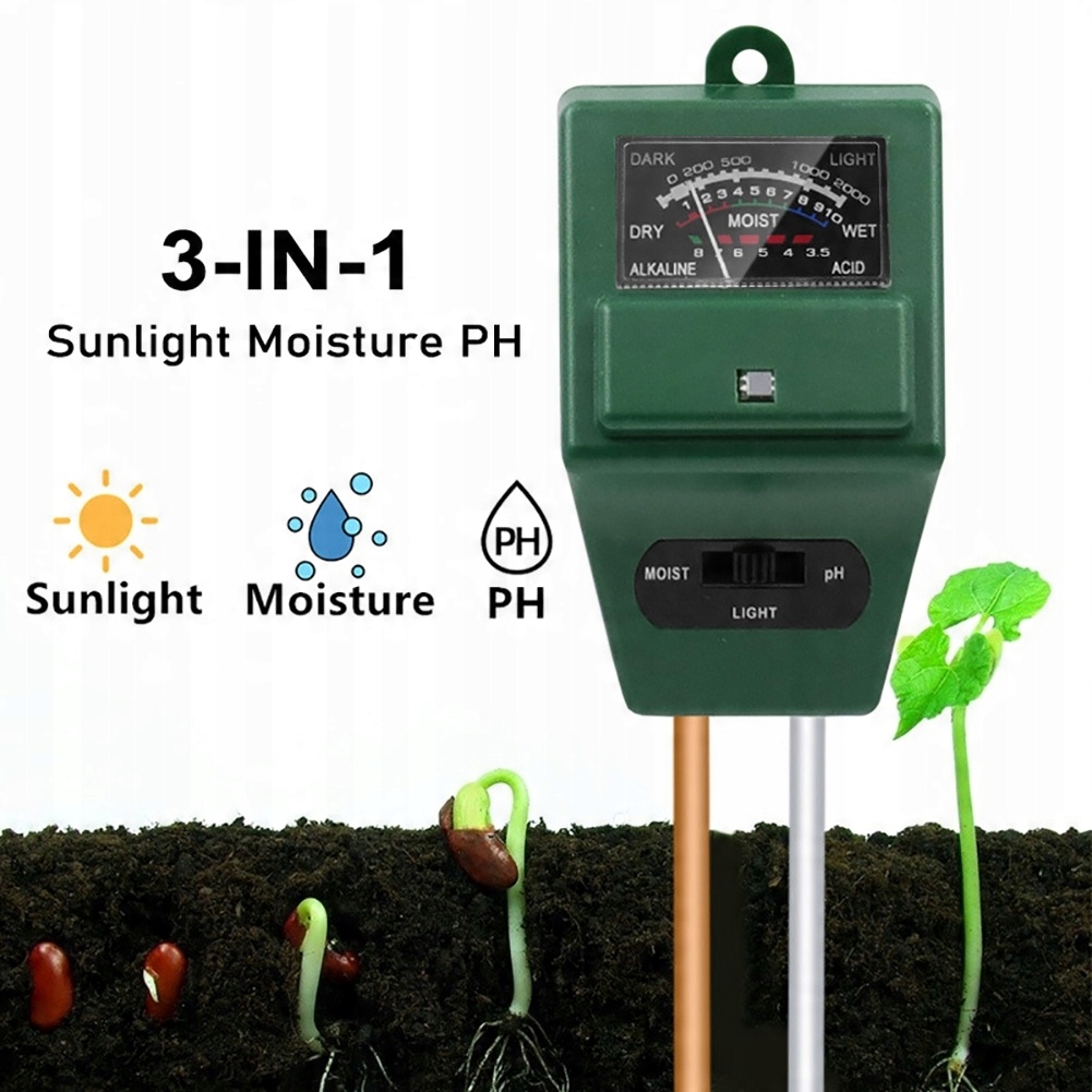 - Вы можете знать, когда поливать растение, и если у него достаточно солнечного света, вы также можете проверить уровень pH в почве, чтобы настроить pH до соответствующего уровня с помощью этого измерителя влажности 3IN1.