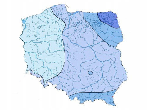 Поверхность Польши разделена на зоны мороза: от I до IV.