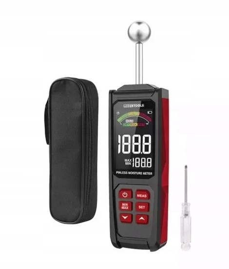 - Измеритель влажности с датчиком мяча из серии Meec Tools идеально подходит, когда вы хотите измерить влажность бетона, кирпичи, обоев и других строительных материалов. Он не повреждает поверхность материала, потому что измерение происходит без палки. Благодаря ЖК -дисплею, датчику мяча и функции автоматической калибровки, измеритель влажности идеально подходит как для профессионалов, так и для любительских DIY.