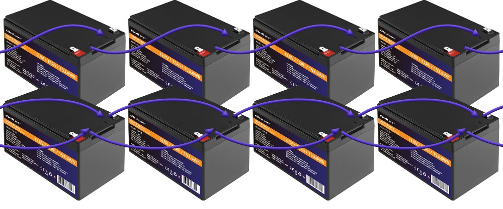 Наши батареи LiFePO4 можно подключать последовательно и параллельно. Единственное условие, которое необходимо соблюдать, чтобы не повредить батарею, — это использовать батарею того же напряжения, емкости и степени износа. Если мы хотим увеличить напряжение, мы должны соединить батареи последовательно, т. е. (+) с (-). Однако если мы хотим увеличить емкость, то соединяем (+) с (+) и (-) с (-) параллельно. Можно подключить максимум 4 аккумулятора.