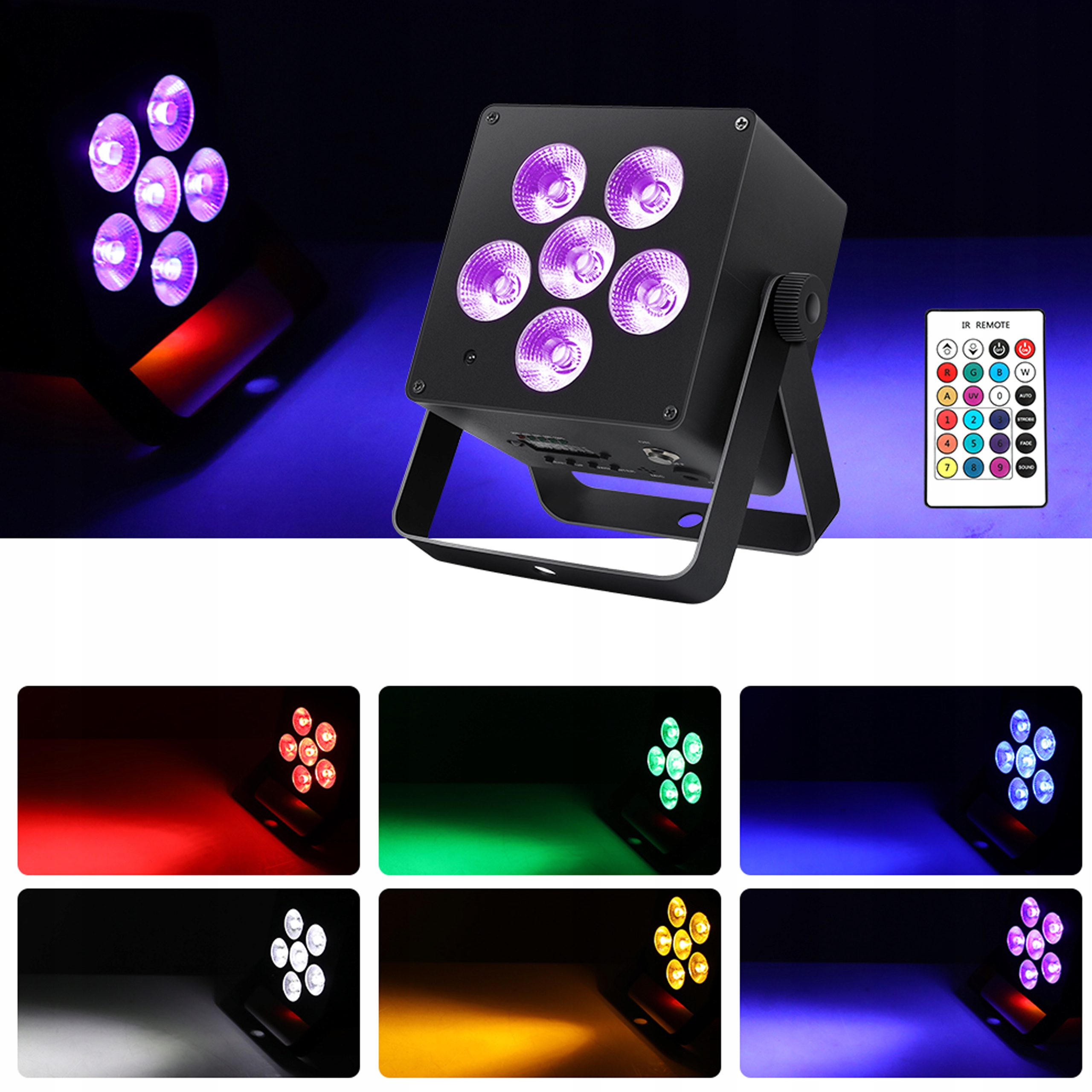 ✔ Сильные светодиоды Rgbwa-uv светодиоды (6 x 6W)-Основная цветовая палитра, от теплых оттенков до интенсивного ультрафиолета. Авто, звук, мастер/раб, DMX и инфракрасный пульт дистанционного управления.