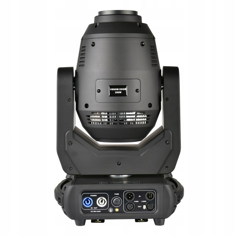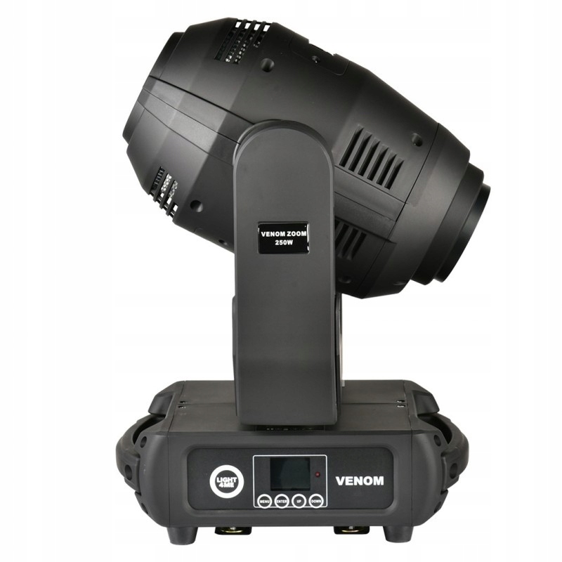 ✅ Light4me Venom Zoom 250 IS Гибридная светодиодная подвижная головка , которая благодаря функции Zoom объединяет функции Beam и Spot . Угол луча может плавно меняться от 5,5 ° до 30 °, а резкость освещения пятен освещения обеспечивается электронным фокусом. Среди дополнительных функций, безусловно, стоит упомянуть двухцелевое вращение цветового цвета, скруток Gobo и эффект Shake Gobo, а также стробоп -режим с регулировкой частоты вспышки.