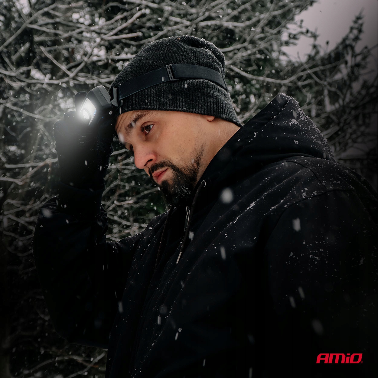 Аккумуляторный налобный фонарь с датчиком движения XPG+COB 1800мАч AMIO-04667
