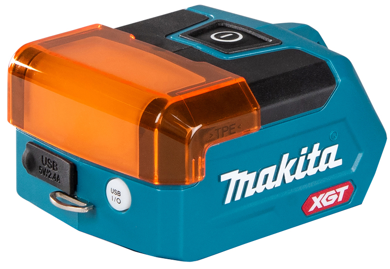 Компактный фонарик с выходным портом USB для различных приложений. 3 режима освещения, выбираемые нажатием кнопки, с функцией памяти для выбранного режима. Это: боковое освещение; верхнее освещение, боковое и верхнее освещение. Оснащен двумя белыми светодиодами дневного света. Примерно 64 часа работы при 150 лм, с аккумулятором BL4040.