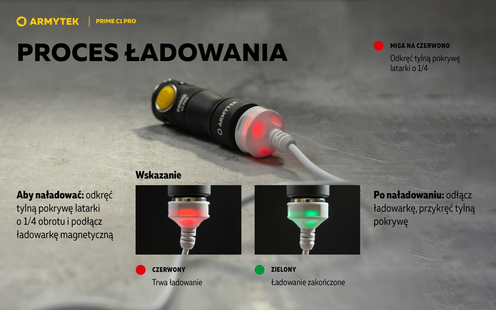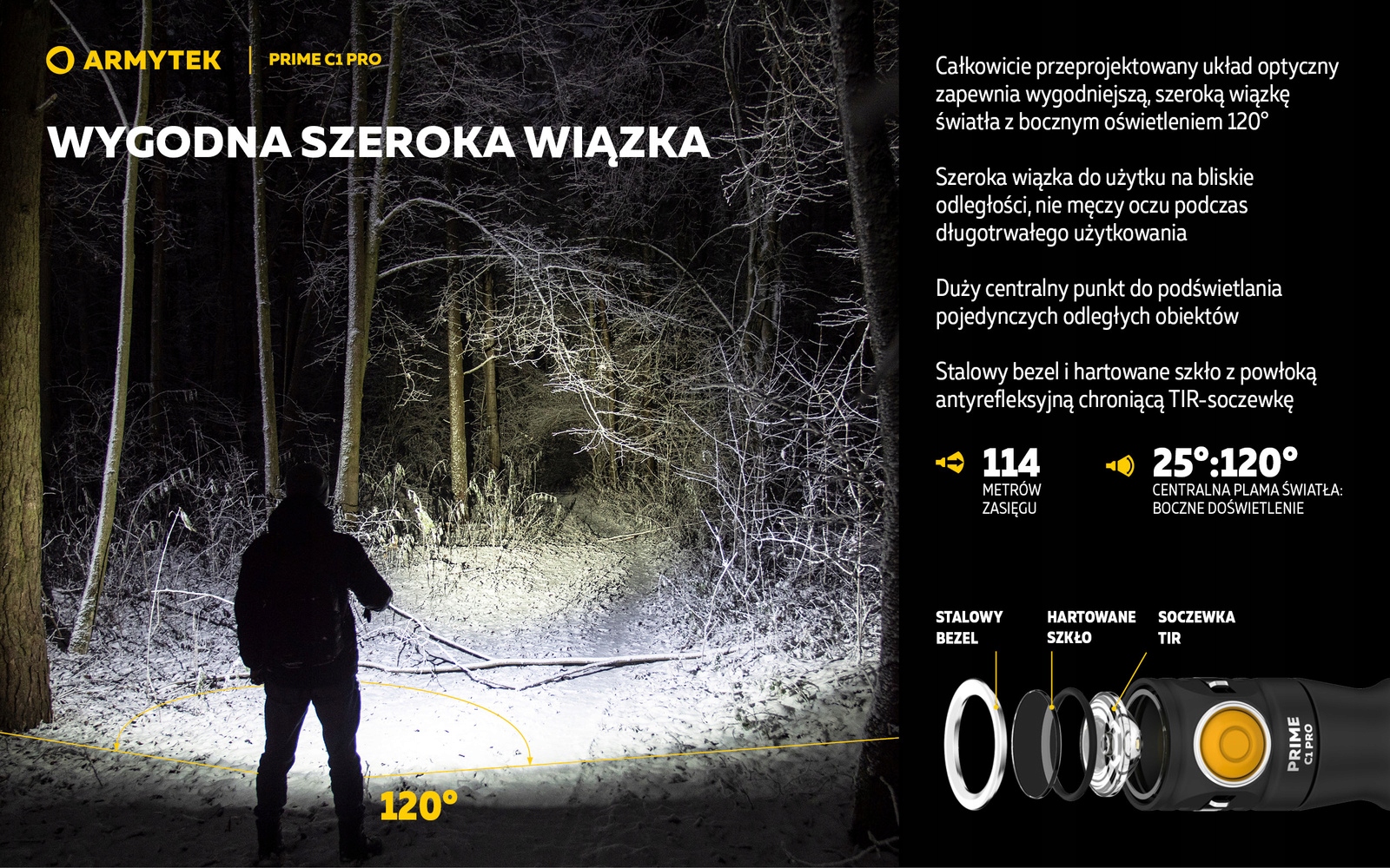 Модель оснащена новой оптической системой с TIR-линзой, защищенной закаленным стеклом с антибликовым покрытием. Простое управление по умолчанию (6 режимов) можно расширить до 11 режимов в расширенной версии. Входящий в комплект 18350 Li-Ion емкостью 900 мАч заряжается примерно за 2,5 часа с помощью магнитного зарядного устройства USB. Prime C1 Pro гарантирует полную защиту от воды, пыли и падений по стандарту IP68, а также активную защиту от перегрева.