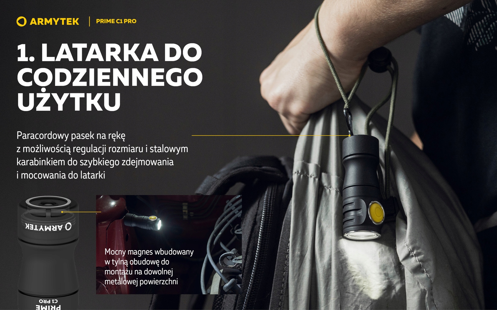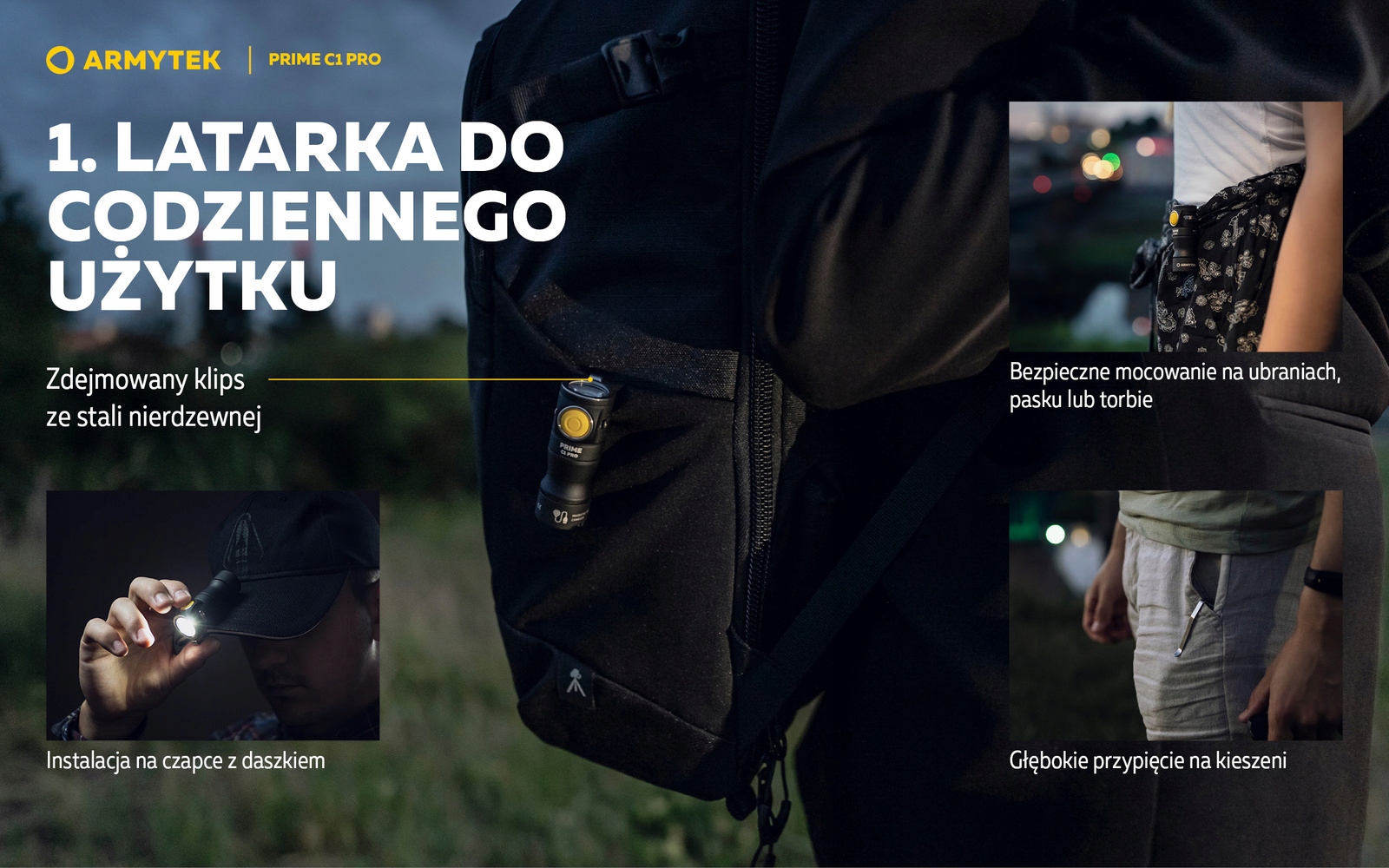 Prime C1 Pro — самый компактный и легкий фонарь Armytek, изготовленный из прочного авиационного алюминия. Несмотря на небольшой размер и вес, он предлагает впечатляющую мощность света и эргономичные решения, которые делают его надежным источником освещения для повседневного использования, занятий спортом и путешествий.