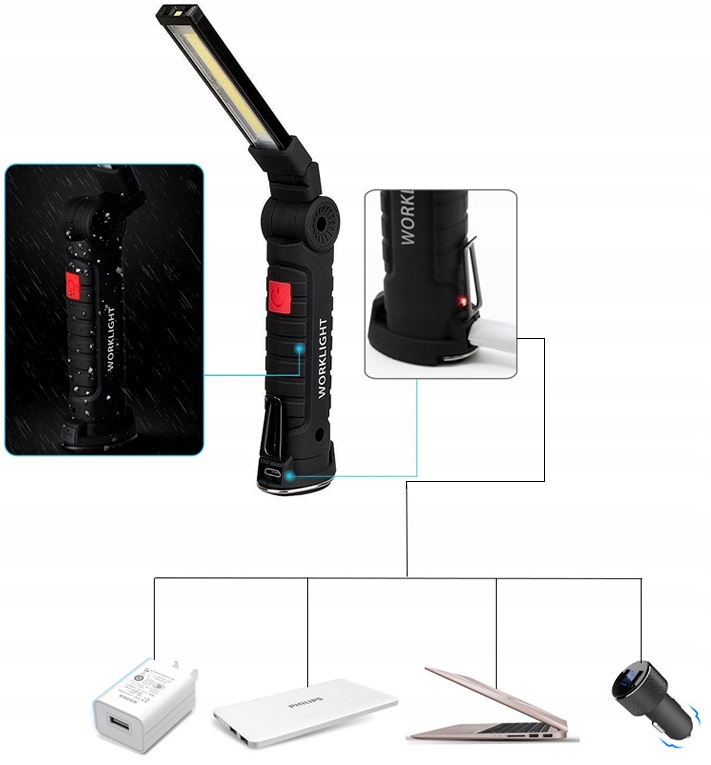 СВЕТОДИОДНАЯ ЛАМПА COB ДЛЯ МАСТЕРСКОЙ, МАГНИТ USB