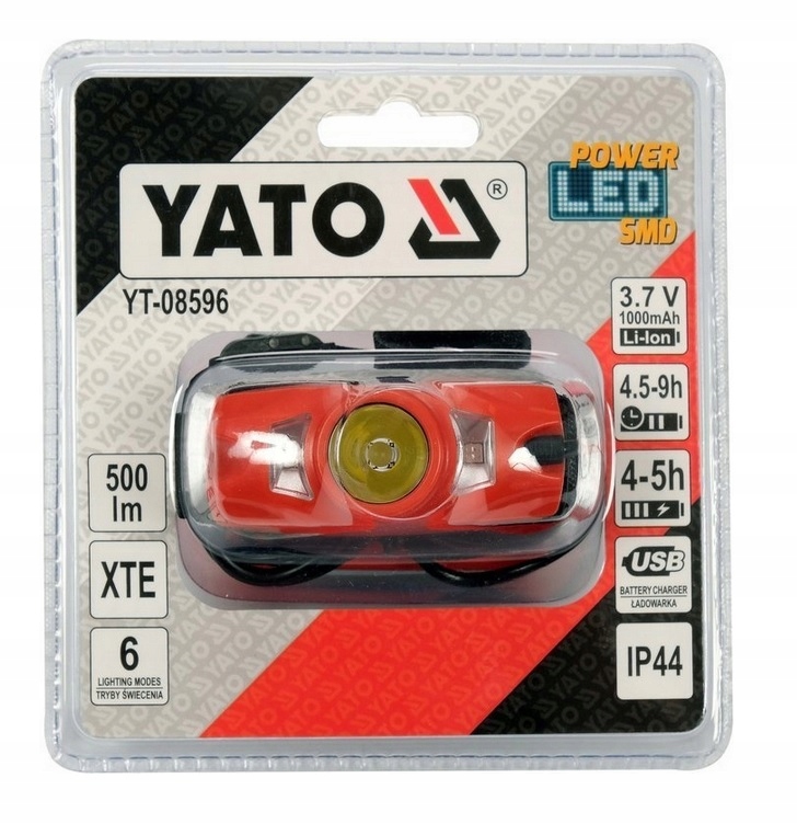 ФОНАРИК РЕГУЛИРУЕМЫЙ ФАР 500лм IP44 3,7В 1000мАч YATO YT-08596