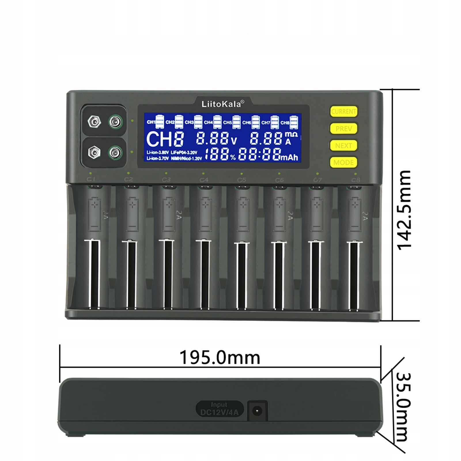 Большим преимуществом зарядного устройства Lii-S8 является возможность быстрой зарядки по нескольким каналам силой тока 2А одновременно и возможность зарядки NiMH аккумуляторы 9 В.