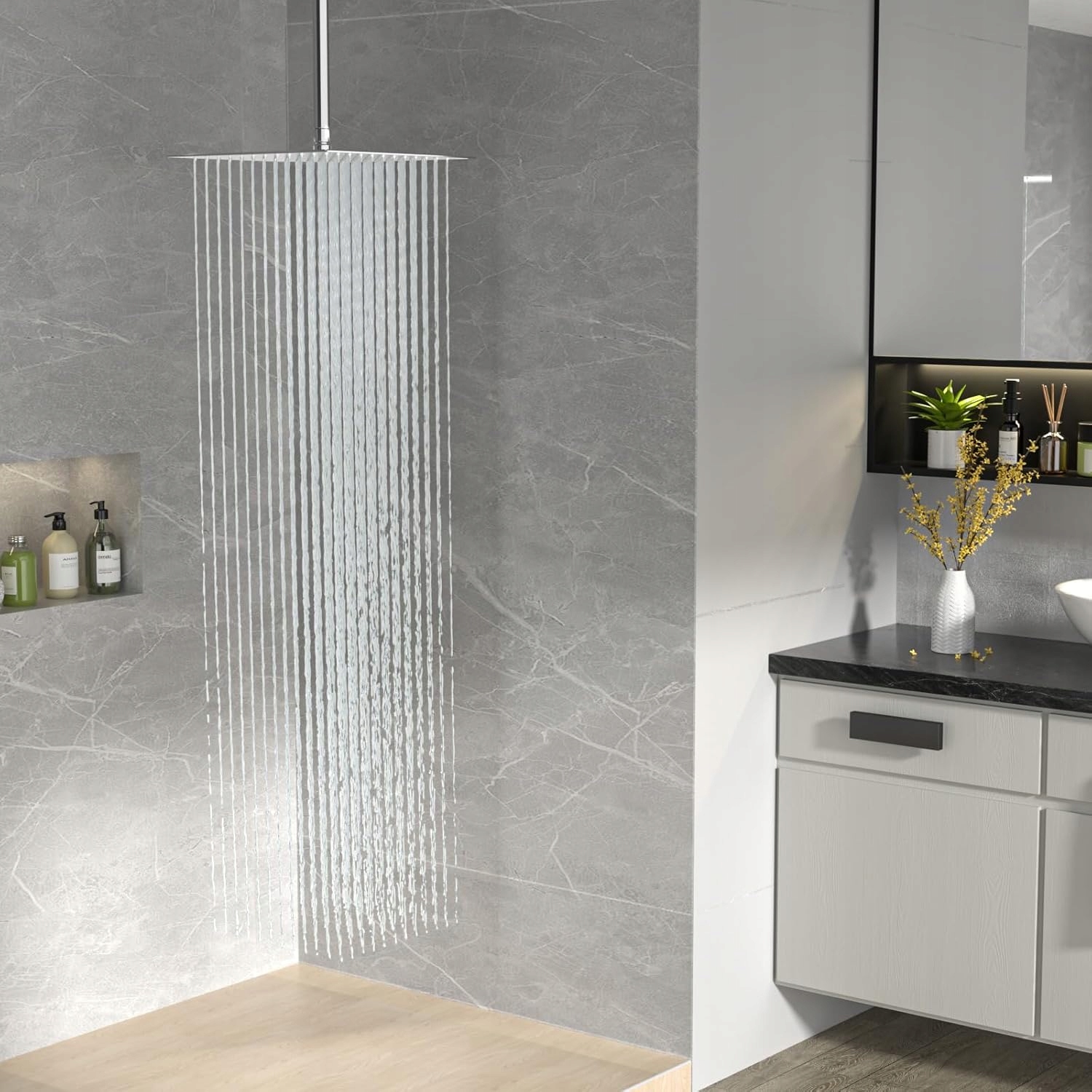 - Элегантный дизайн: Тропический душ квадратной формы с хромированной поверхностью идеально вписывается в современный интерьер. Ультратонкий дизайн (толщиной всего 2 мм) подчеркивает минималистский стиль, добавляя элегантности ванной комнате.