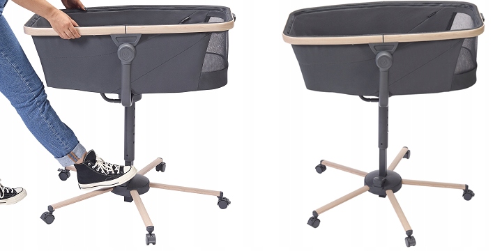 Maxi Cosi Alba имеет раму с 5 поворотными роликами. Благодаря этому мы с малышом можем легко передвигаться по дому. Колеса имеют блокировку, предотвращающую неконтролируемое перемещение изделия.